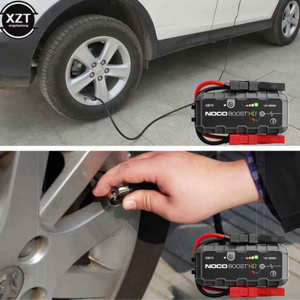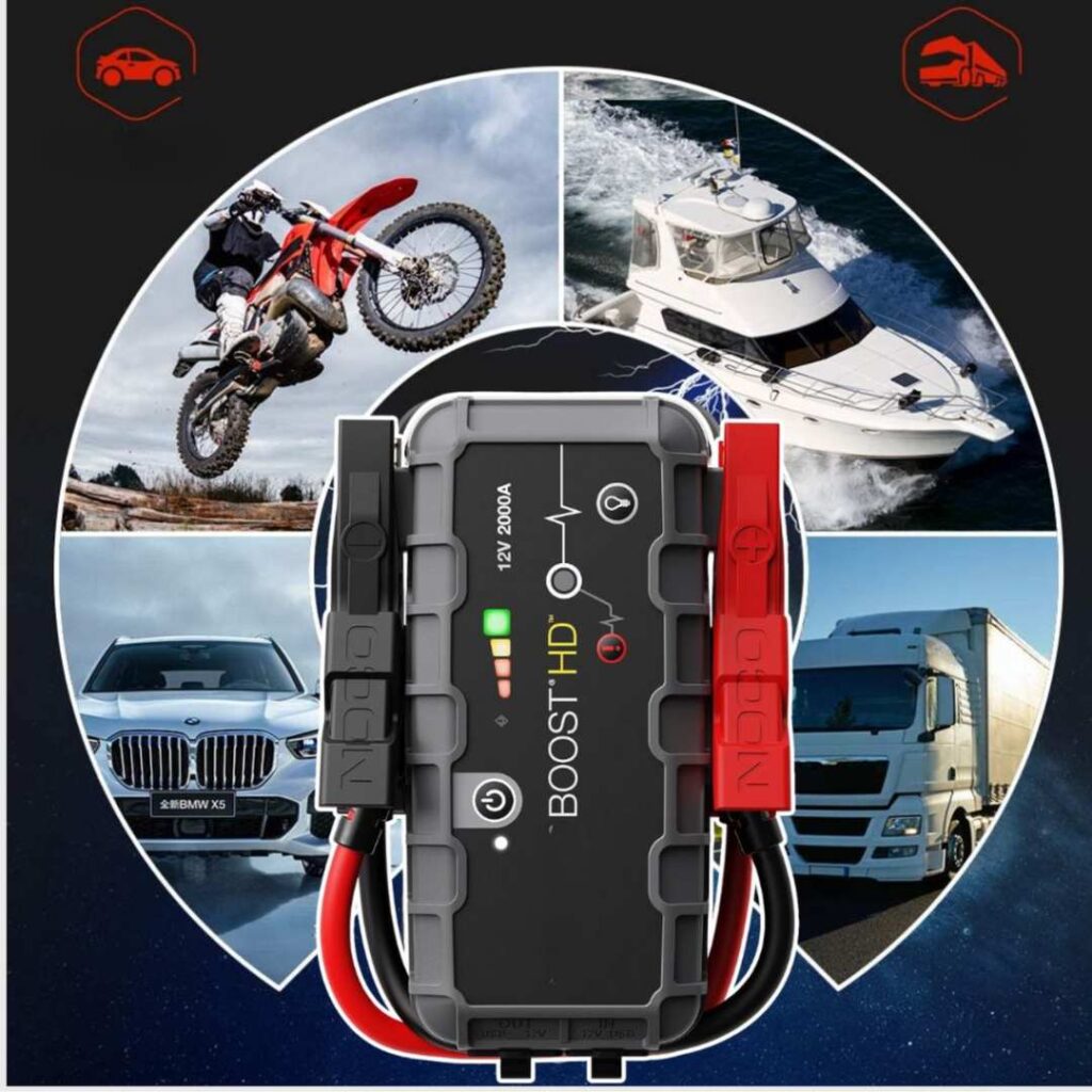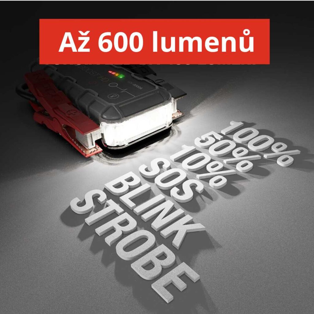 Nabíjí dvě zařízení současně, výkonná svítilna se 3 režimy osvětlení dosahující až 300 metrů, startuje dieselové a benzinové motory, reguluje tlak v pneumatikách a dokáže nafouknout i pneumatiky terénních vozidel.