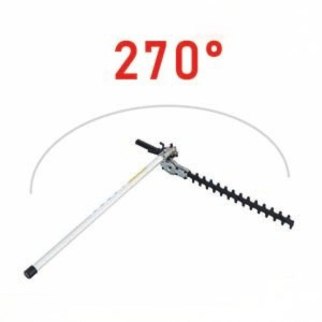 Regolazione Tagliasiepi anche con una sola mano, inclinabile da 90 a 270 gradi. Un modo straordinariamente semplice per intervenire anche nelle condizioni più impervie.
