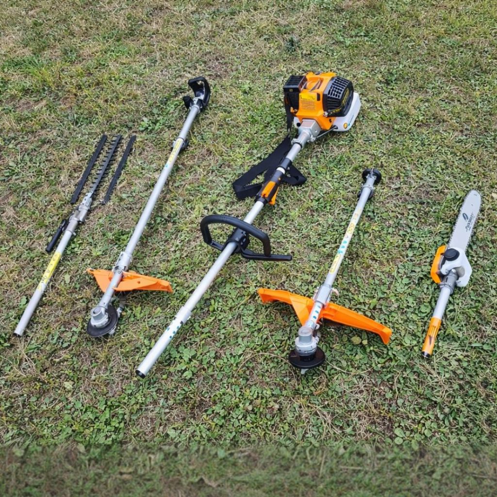 Il decespugliatore Multifunzione Amc Deisgn 5 in 1, di cui 1 testina si distingue per duttilità e facilità d’uso, con una sola unità operativa potrai infatti avere 5 funzioni: Decespugliatore,Motosega, Tagliasiepi, Tagliabordi.