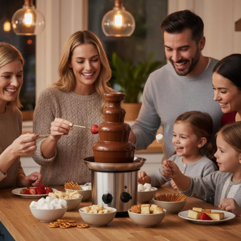 Zapněte fontánu, nalijte čokoládu a sledujte, jak se obyčejný večer mění ve sladkou slavnost plnou radosti.
