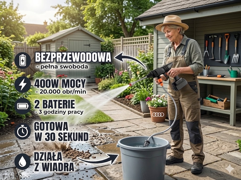 ✅ Działa z wiadra – pełna mobilność, zero ograniczeń