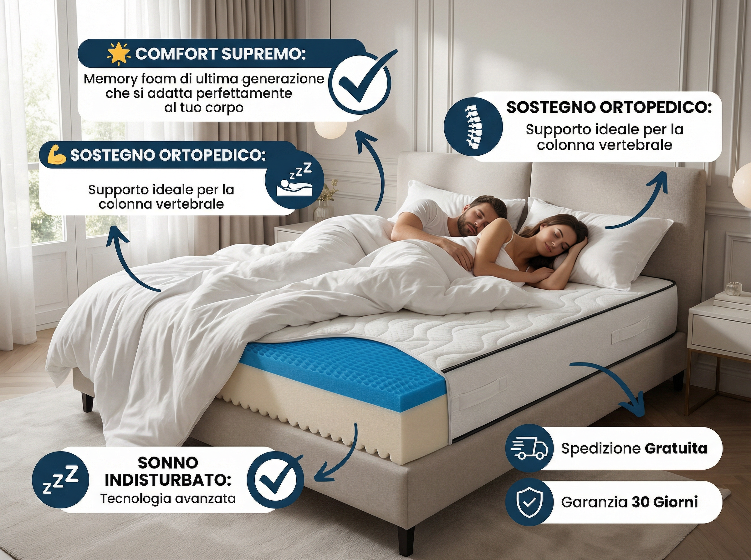 STEP 2 – PROVA 30 GIORNI: Sostituisci il vecchio materasso e inizia subito a dormire meglio. Garanzia totale soddisfatti o rimborsati.
