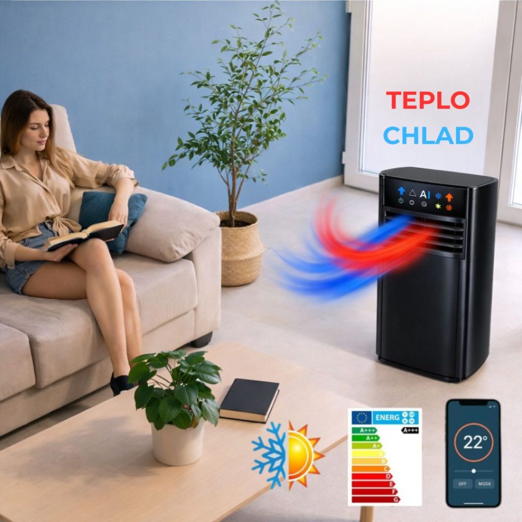 Přenosné 3v1 zařízení, které topí, chladí a odvlhčuje bez hadic a bez instalace. HEPA filtr proti prachu, alergenům, virům a plynům. Spotřeba už od 7,65 Kč denně, i při provozu 24/7