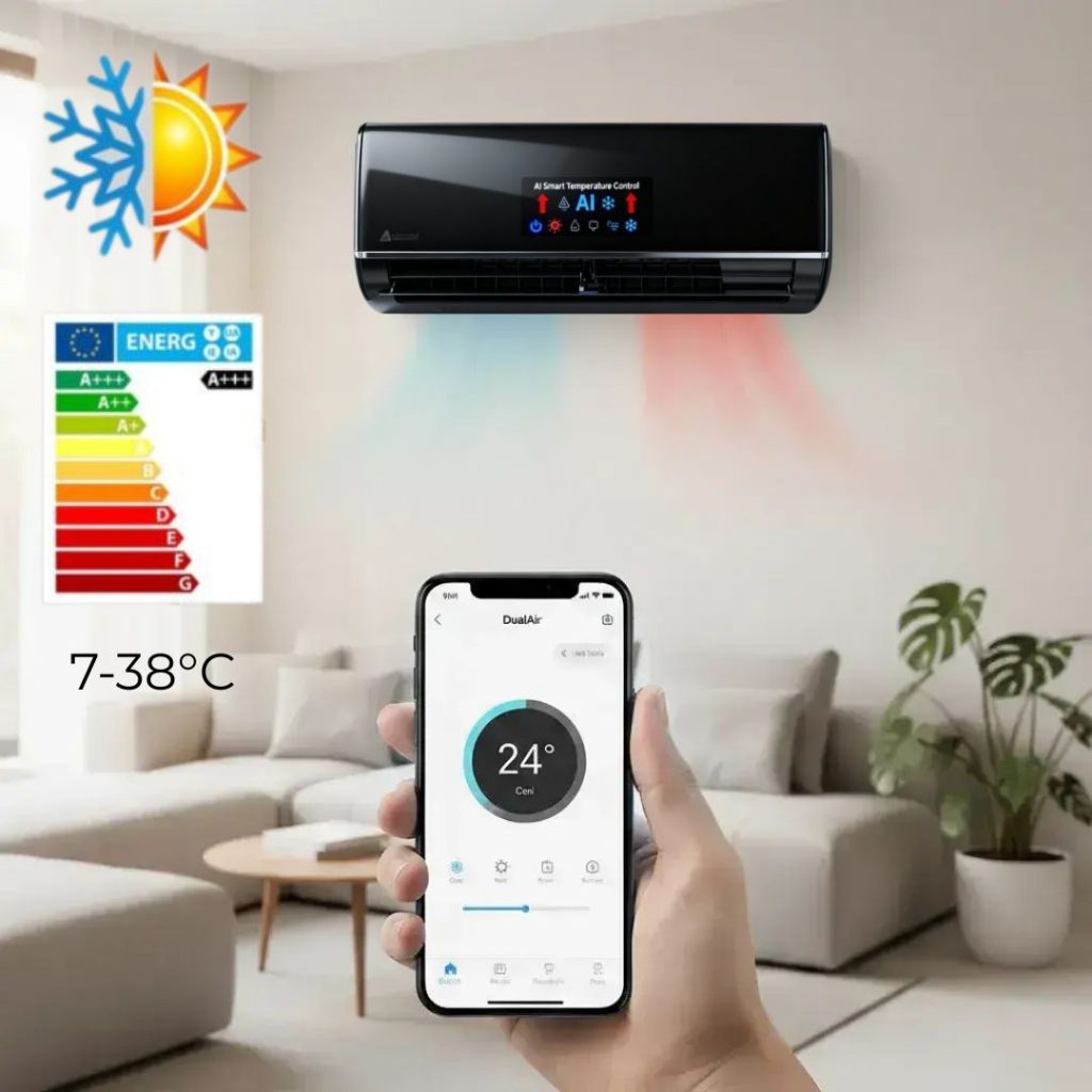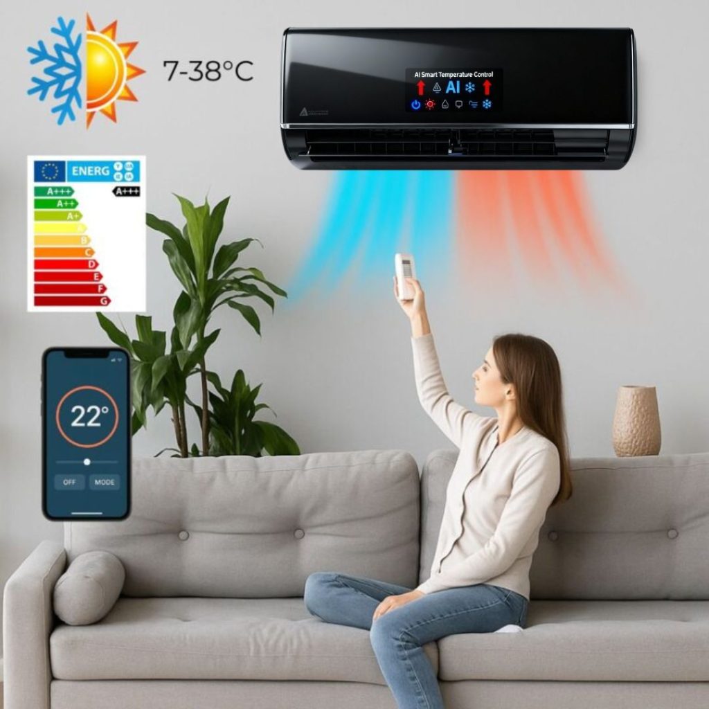 Tutte le funzioni sono controllabili a distanza tramite app o telecomando: accensione, spegnimento, regolazione della temperatura, programmazione intelligente e monitoraggio dei consumi. Anche se non sei a casa, il dispositivo può essere acceso prima del tuo arrivo o puoi modificare le impostazioni in tempo reale.