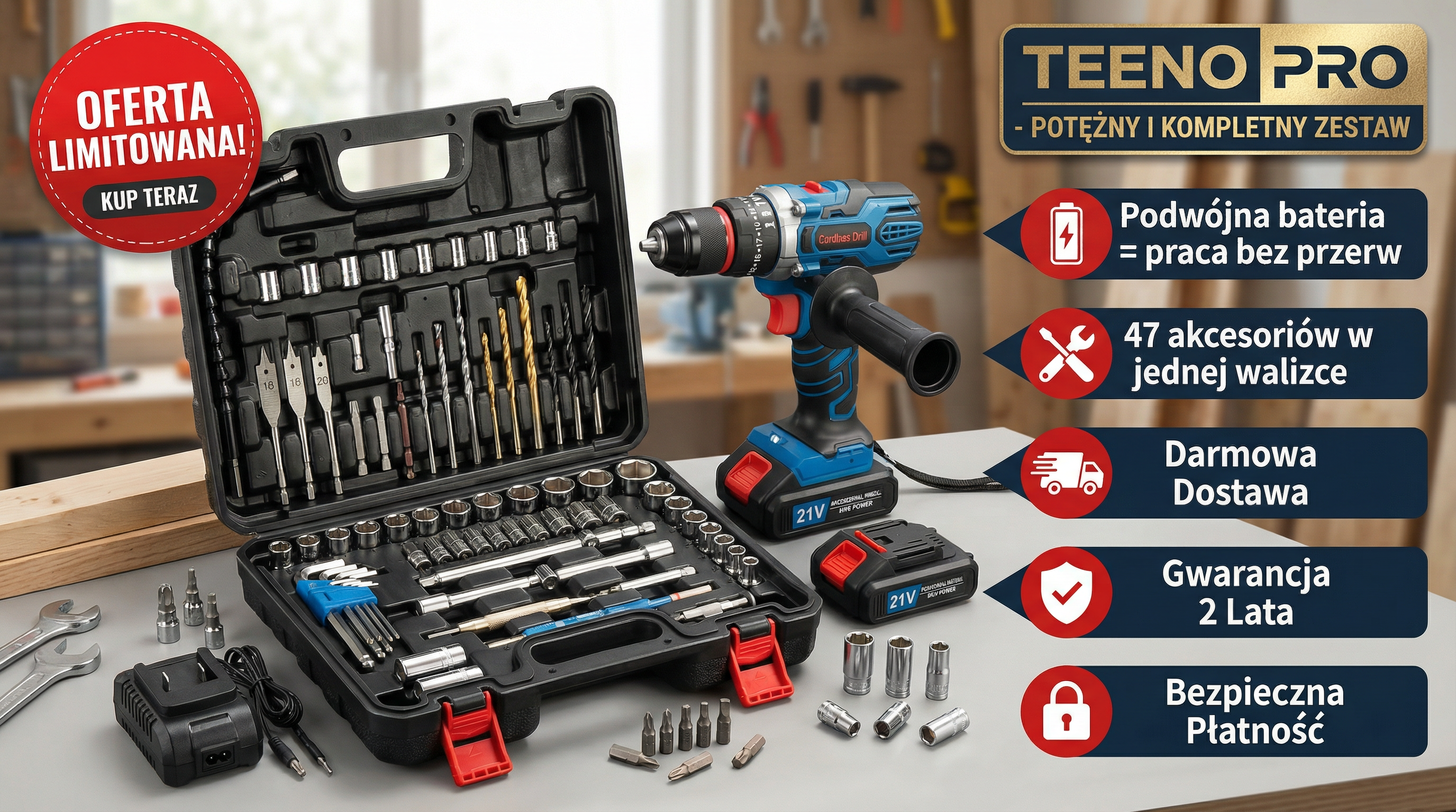 ZAMÓW TERAZ ZESTAW WIERTARKO-WKRĘTARKA SMART™ ZA 299 ZŁ I OTRZYMAJ DARMOWĄ DOSTAWĘ!