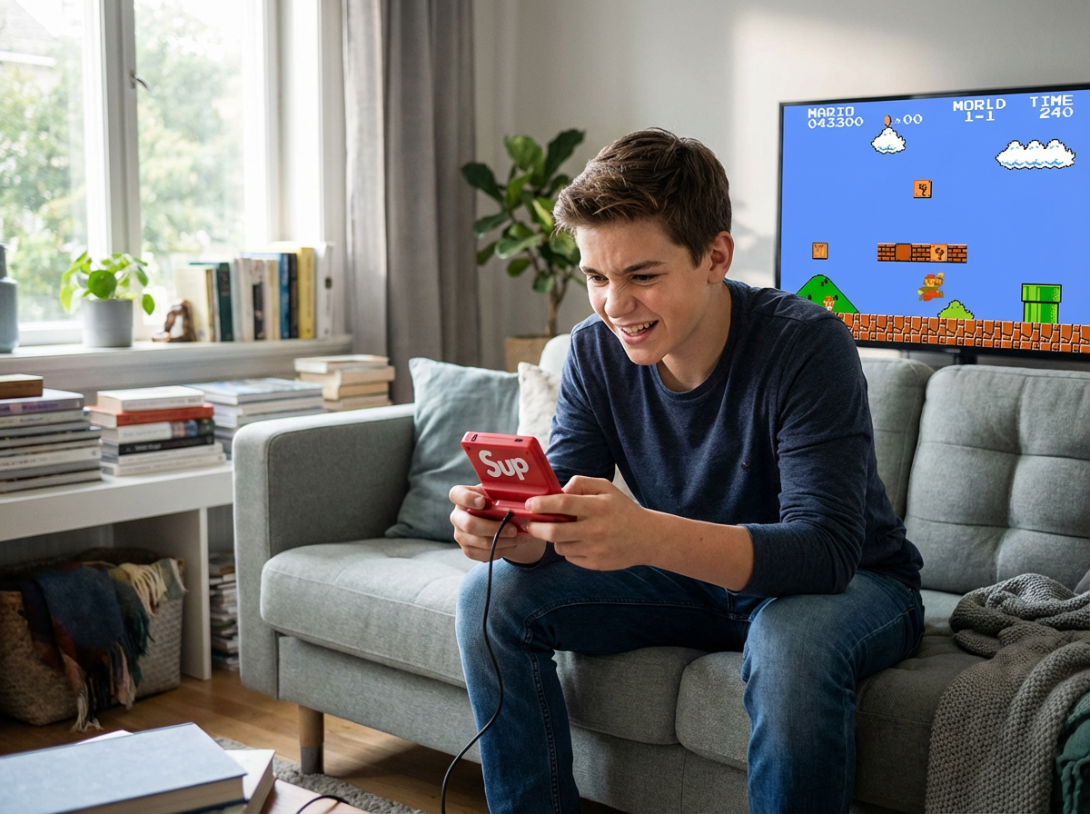 Comprei como presente de aniversário para o meu marido e foi um sucesso total! Agora toda a família joga junta aos fins de semana. A instalação foi super simples - ligámos à TV e começámos a jogar imediatamente. Os miúdos adoram os jogos que eu jogava na minha infância. Criou memórias inesquecíveis!